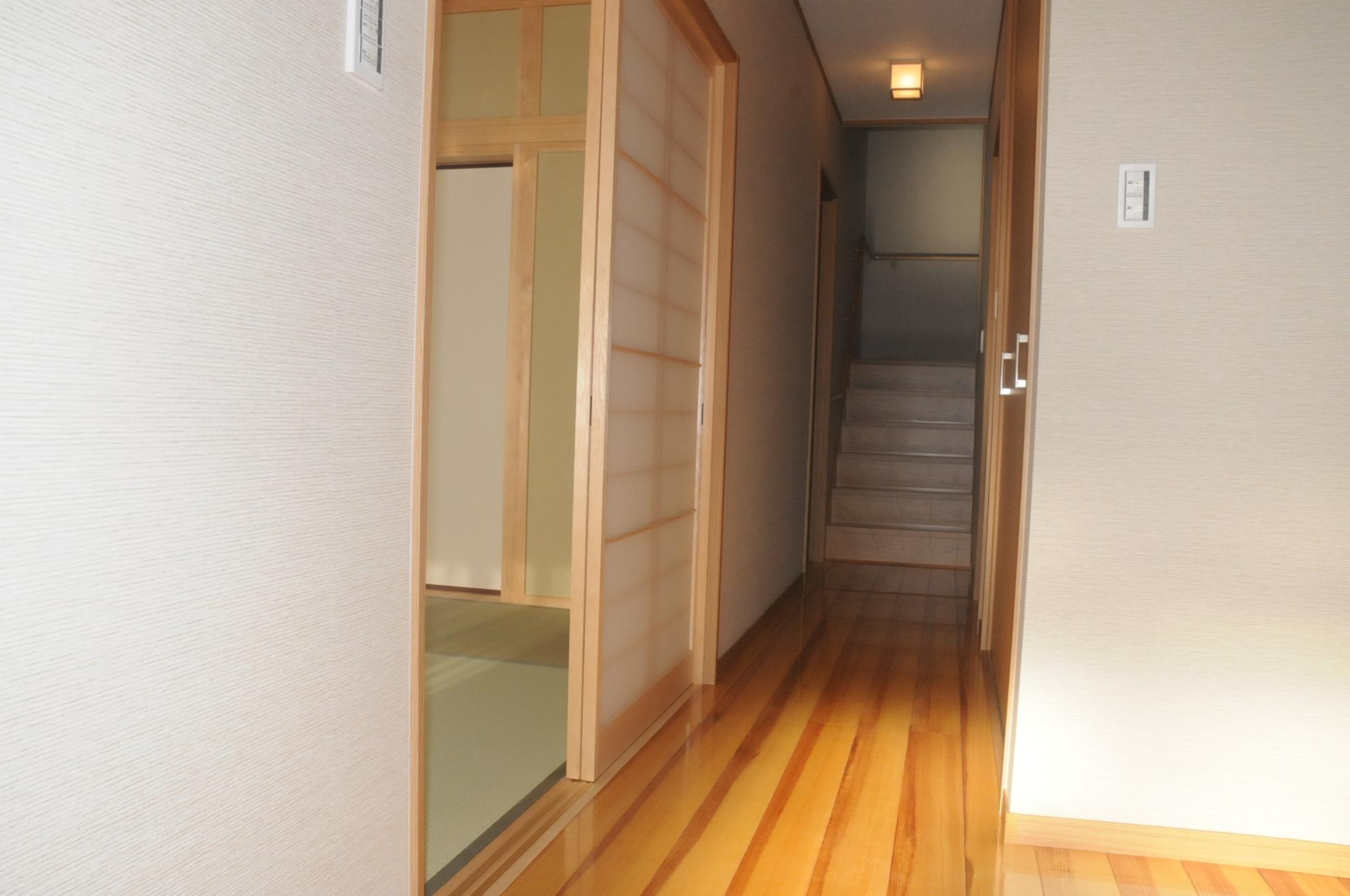 河川沿い狭小敷地に建つ、真壁和室のある、明るく開放的な住宅